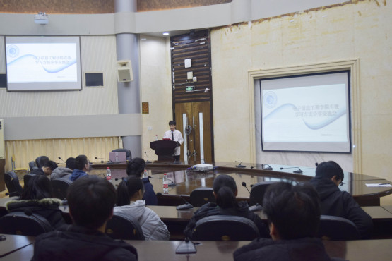 2018年12月13日13时整,在国际会议厅举办了电子信息工程学院“有效学习方法分享交流会”活动。此次交流会由王圳清主持,王力、陈晓、陈宇、朱福发表讲话。分院各班学习委员携班级同学参加了本次交流会。