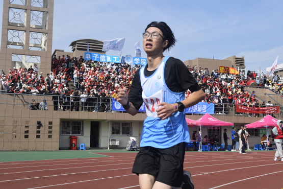 随着枪声的响起,运动员们迈着矫健的步伐,踏上了征程。赛场上运动员们你追我赶,努力的朝前冲,朝着那份荣誉前行。随着时间的流逝,那份疲惫感越来越重,但是我们的运动员们并没有因此停下脚步,继续朝前进。在他们的身上能感受到运动健儿们那份永不放弃的体育精神。最终,张新雷,杨森,袁慕义分别获得了第一名,第三名,第五名的好成绩。其中张新雷和杨森两位均破了校记录,这是属于他们的荣誉,也是我们电子信息工程学院的荣誉。