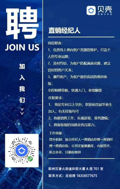 招聘需求:应贝壳宁波站发展需要,公司宁波新房事业部扩大人才需求量,现拟招聘以下岗位: