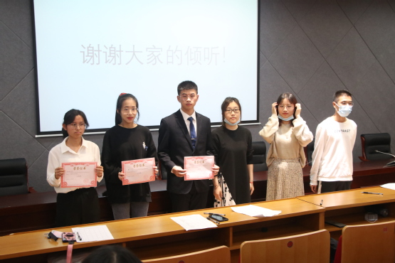 比赛中,选手们从保护环境、垃圾分类到抗击疫情、国际关系的各个角度都精心准备切入点,并结合新闻评论来印证着自己的观点。其中金志豪同学通过抗美援朝70周年时事作为切入点,深刻的讲述了“民族自信”的重要性;邵熊洲同学则从当下的疫情出发,讲解了抗击疫情的正确打开方式;而李任娇选手不仅为同学们讲述了保护环境的必要性,还介绍了保护环境的方法。选手演讲完毕后,王茹佳老师与褚依涛学长就选手的问题提出了建议,并作出肯定。随后刘念老师评论道:“自信在比赛中很重要,每一位选手发挥的非常出色,都针对现在发生的时事政治表达了自身的观点,同时也说明在日常生活中对时事的关注,这场比赛本身更是出乎意料的精彩”。最终,邵雄洲同学获得此次“知行杯”时政评论大赛一等奖,戴月同学和李任娇同学分别获得二等奖和三等奖。