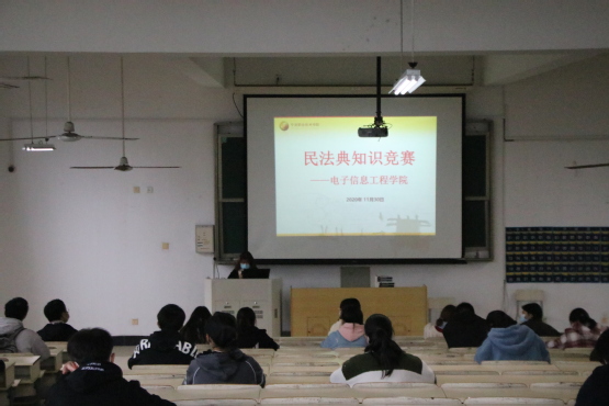 2020年11月30日12时整,在2号教学楼401教室开展了电子信息工程学院民法典知识竞赛活动,共有35人参与竞赛。