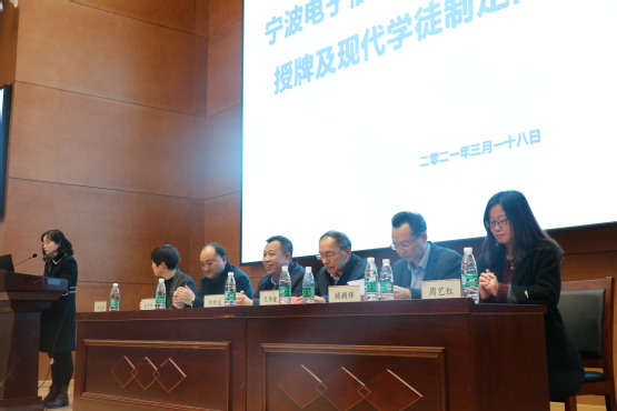 2021年3月18日下午十三时三十分,电子信息工程学院于联盟大厦一号报告厅举行宁波电子信息行业高技能人才培养基地授权及现代学徒制定向培养开班仪式。本次开班仪式由曾佳老师主持,电子信息工程学院院长陈子珍、宁波市经济和信息化局企服处王伟健处长、电子行业协会秘书长顾朝辉、捷创技术有限公司技术经理金仲军、电子行业协会办公室主任张宏仓、学院总督导何明友、就业及产学合作处处长张定华、教务处副处长周艺红等领导与嘉宾出席此次开班仪式。专业老师和全体电子信息专业大二学生参与听讲。