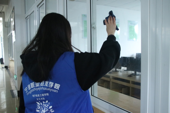 此次活动的清扫范围主要包括3号教学楼内的楼道、门窗以及校园小树林。负责人有序的将志愿者分成数个小组,使志愿者们各司其职。走进3号楼首先就能看到埋头扫地、拖地的志愿者们,还有许多志愿者掏出事先准备好的抹布擦玻璃。视角转换到校园小树林,志愿者们拿着夹子捡起埋在树丛下的小垃圾和废水瓶。志愿者每个人都穿着电子信息工程学院的蓝色志愿者服,统一的着装使人眼前一亮;忙碌的背影,表现出电信学子乐衷公益的优良风气。在此次活动过程中,志愿者们都很享受这个活动所带来的快乐,仅仅通过下午一个小时的时间和自己的一份微弱力量就把校园变得更加美好,是一次很自豪的体验。