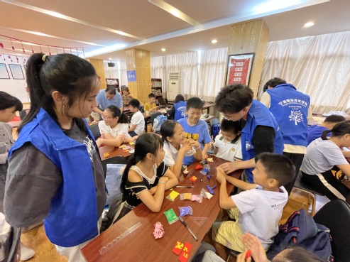“对大哥哥大姐姐们这几天的表现我的评价是5颗星,袁锦钊哥哥给我们讲了张桂梅奶奶和林俊德爷爷的故事,我非常感动;大姐姐教我们编织的手链非常好看,我放学回家就送给妈妈了,妈妈也夸我编的漂亮,哥哥姐姐们还非常关心我们的学习,我真心的跟你们说一句:谢谢大哥哥大姐姐们!”谭子瑜小朋友认真地说道。“小老师们备课很充分,上课也都听认真的,虽然上课的小朋友年龄跨度比较大,但是他们在课堂上都设置了不同难度的上课内容,小朋友们很喜欢听小老师们的课。就是学校安排的这5天时间实在太短了!如果以后还来我们的社区假日学校支教的话希望能时间长一点。”全程陪着孩子们上课的社工梅阿姨如是说。渡头董社区关工委主任郑蕾则表示:“校社共建工作的开展,不仅让假日学校充满了活力,同时也给那些即将走向社会的学生提供了一个施展才华的平台,取得了良好的共赢效果。”