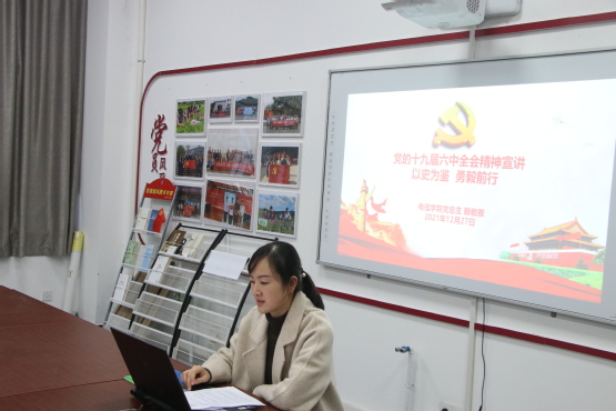 2021年12月27日中午12时30分,电子信息工程学院党总支在东校区3号教学楼112教室召开全体党员学习会,由赖敏雅老师担任主讲人,电子信息工程学院全体党员教师参加学习。