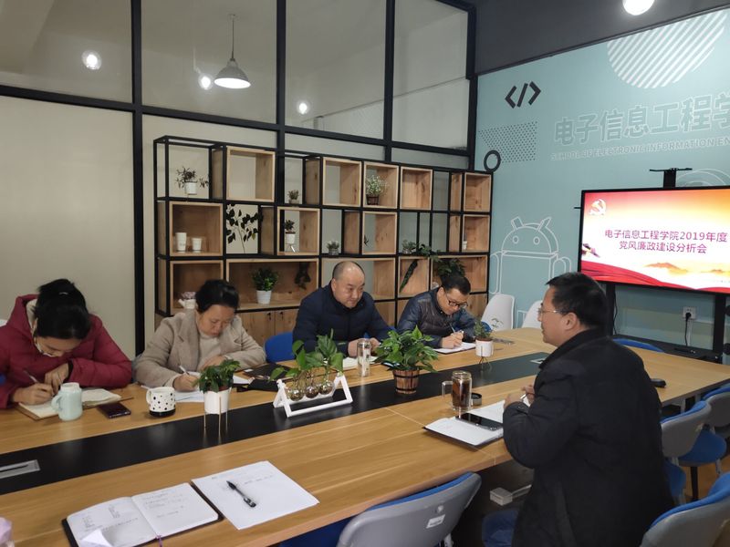 为进一步落实全面从严治党要求,加强党风廉政建设责任制建设,2019年12月2日,电子信息工程学院党总支委员会部召开了年度党风廉政建设责任制建设分析会。会议由党总支书记黄伟文支持,会上班子成员就加强党风廉政教育、完善党风廉政制度;强化党风廉政责任意识,规范管理;以及下一步工作打算方面进行了党风廉政建设分析。