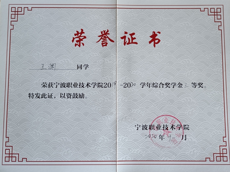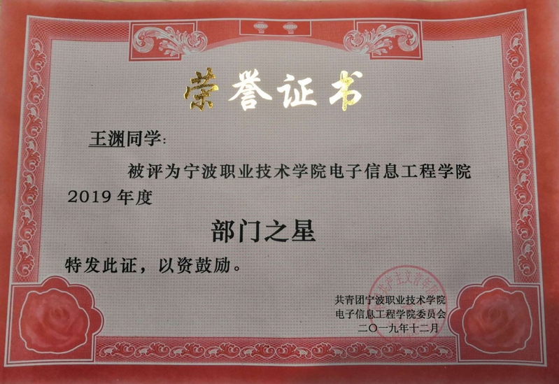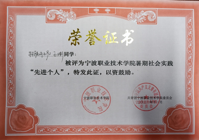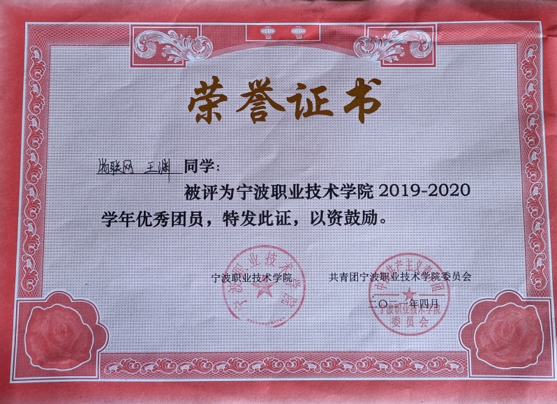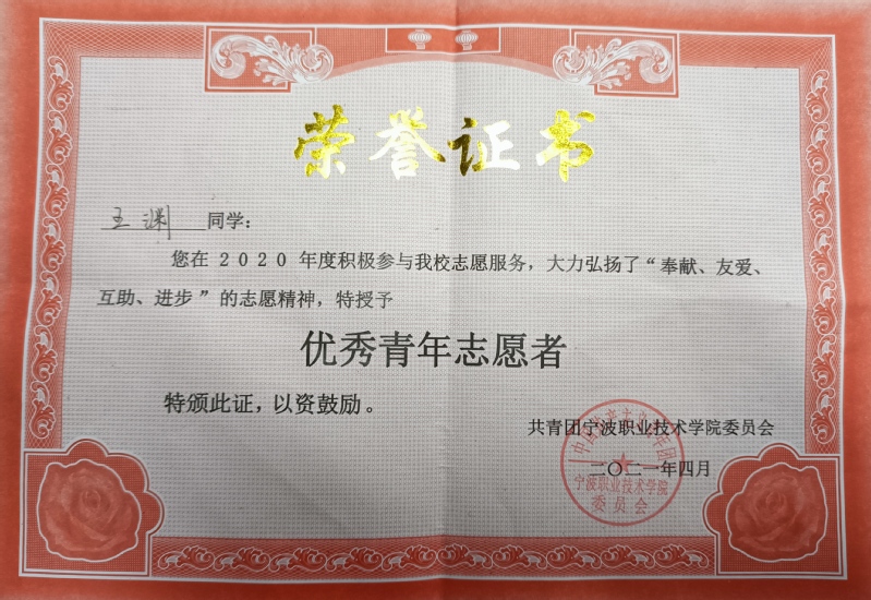 宁波职业技术学院2021年“青春榜样”年度人物——王渊(修德榜样)