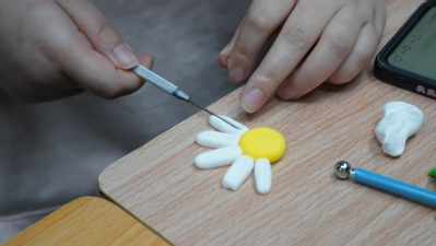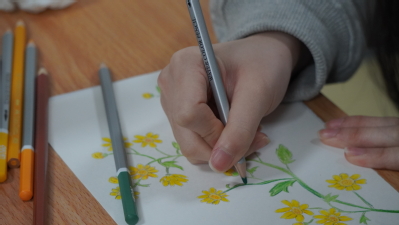 缅怀重在心而不拘于行。工作室老师组织同学们用彩铅绘制菊花、用黏土制作花朵寄托哀思。同学们伴着轻柔的音乐,握着彩铅,绘下松弛的线条、橡皮轻轻的拭擦、行云流水的笔触、逐渐清晰的轮廓、勾线、上色……一幅幅形态各异的菊花彩铅作品从同学们的手中不断呈现。将黄色黏土擀成薄片、剪出细小的条、然后向内圈紧、用剪刀剪掉多余部分制作成花蕊,用白色先做一个球、搓成圆柱形,擀成片、用工具压下纹路制作成花瓣,把花蕊和花瓣组合后一朵立体的菊花生动地展现在我们面前。同学们轻动指尖,在绘画和黏土制作过程中将对先烈和亲人的哀思寄予作品中。同时,工作室老师与同学们分享“鲜花献英烈”主题页小程序,点击屏幕在“人民英雄永垂不朽”的纪念碑前为英烈“云端”送鲜花,开展祭扫活动。该工作室以绘画、黏土制作和“鲜花送英烈”等形式倡导大家清明扫墓采用“云祭扫”,开展生命教育和爱国主义教育。