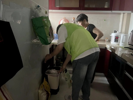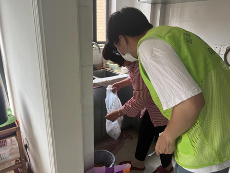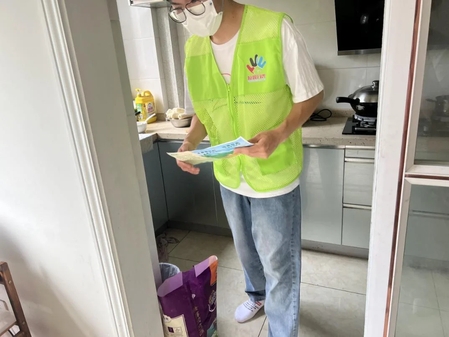 顶着烈日,吹着热风,宁波职业技术院的“甬动青春”实践团的垃圾分类入户宣传活动在东城社区的家家户户拉开了序幕。