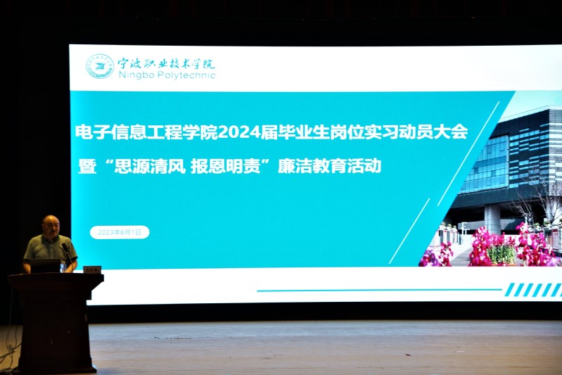 会议第二阶段,校党委委员、纪委书记陈聪诚为实习生们作廉洁从业专题教育动员。陈书记从毕业生岗位实习廉洁教育的涵义出发,结合自己身边的一些案例给同学们讲了如何廉洁从业,并为全体2024届毕业生送上“做廉洁之人、做勤勉之人、做诚信之人、做实干之人”的廉洁从业寄语,谨记母校的校训、校风和学校的三创精神,做一名廉洁、勤勉、诚信、实干的新时代青年。
