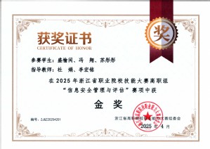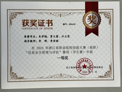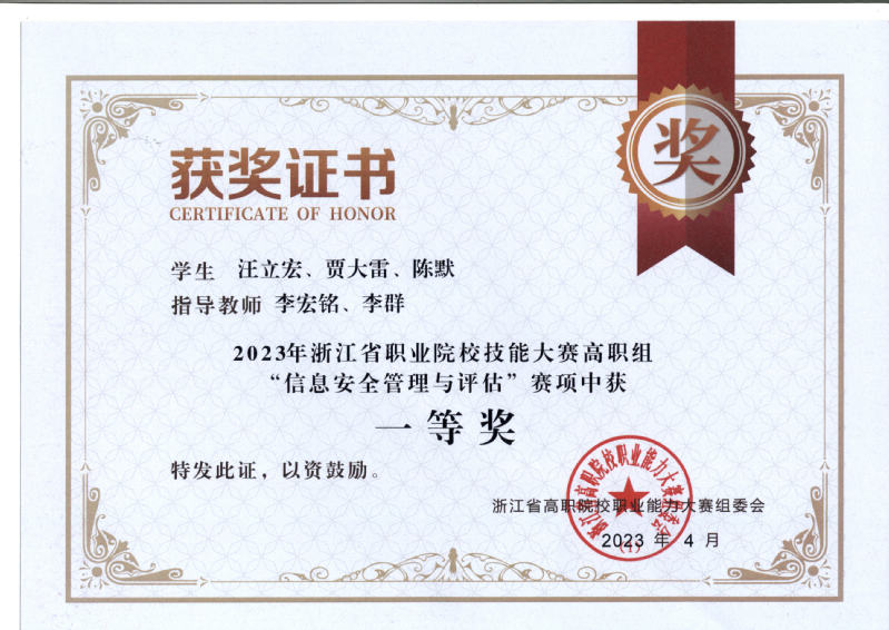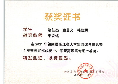 护航亚运安全先行宁波市护网2023北仑区网络安全攻防演习三等奖2022年第五届浙江省大学生网络与信息安全竞赛知识挑战赛高职组一等奖