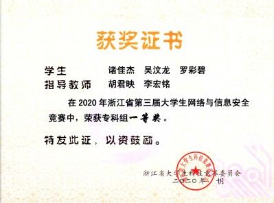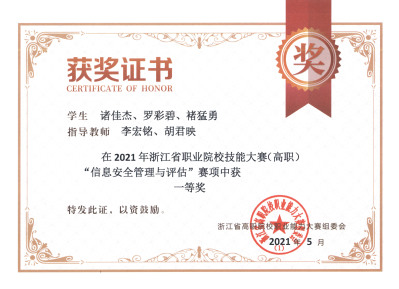 2021年浙江省职业院校技能大赛(高职)“信息安全管理与评估”赛项一等奖2020年浙江省第三届大学生网络与信息安全专科组一等奖