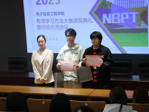 为了表扬先进,互助学习,11月22日中午,电子信息工程学院在联盟大厦报告厅(二)举行了有效学习方法大赛颁奖典礼暨经验分享会议。参与者有电子信息工程学院分院党总支书记赖敏雅老师、学院副院长李超燕老师、分院党总支副书记方科亚老师、学工办辅导员许科威老师及学生140余人。