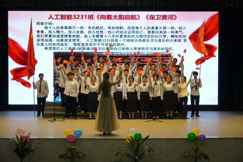 必唱歌曲为校歌《向着太阳起航》,比赛由电子5230班的《我和我的祖国》拉开序幕,唱出对祖国的爱与自豪,人工智能3231班的《保卫黄河》唱出宏伟的气势,计应3231班的《七子之歌》唱出了对祖国的眷恋和赞美,人工智能3232班的《五四特别版错位时空》唱出了对先辈的敬重计应3233《感恩的心》唱出了对祖国的感激之情。经过激烈的竞争和严谨的评分后,选出人工智能3231班获得本次比赛一等奖,计应3231班获得二等奖,人工智能3232班获得三等奖,人工智能3234班、计应3233班获得优胜奖。