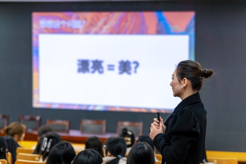 夏天老师开始向同学们抛出一个问题漂亮等于美吗?对于这个问题同学说漂亮只是美的一种。美分为外在美和内在美,真正的魅力必须是内在美与外在美的完全统一。正确的审美是基础、是方向。美等于自然、舒服、和谐、平衡、完整。