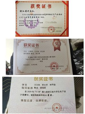 在2021年浙江省职业院校技能大赛(高职)“电子产品设计与制作”赛项中荣获一等奖