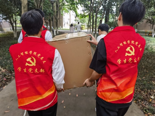 在深化理论学习与实践结合的理念下,学生党支部精心策划了毕业前的最后一次志愿服务岗工作。毕业生党员们身着红色志愿者服装,积极深入寝室楼,不仅热心地帮助即将离校的同学搬运行李,更借此机会向他们传递了廉洁从业、诚实守信的崇高精神,以实际行动彰显了党员学生的高尚品质和责任担当。