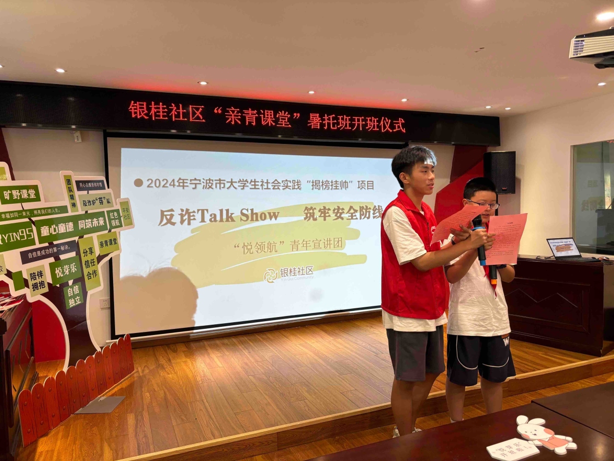 “电信网络诈骗花样繁多,套路不断升级,手段经常翻新,令人防不胜防。”7月5日上午,有趣又有料的反诈Talk Show在鄞州区下应街道银桂社区新时代文明实践站“爆笑”来袭,社区“亲青课堂”暑托班开班,“社、警、校”反电信网络诈骗宣传系列活动同步启动,社区、警方、高校共建矩阵联盟正式成立。