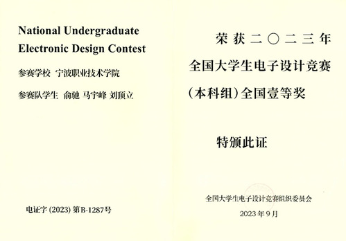 2023  全国大学生电子设计竞赛(本科组)  团体一等奖