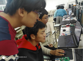 工作坊主要培养学生面向企业电子产品研发、生产、调试等综合能力。学生经过工作坊训练后具备初级电子工程师的专业知识和实践能力,将直接推荐进入企业电子开发岗位。工作坊每周定期组织辅导,场景如下: