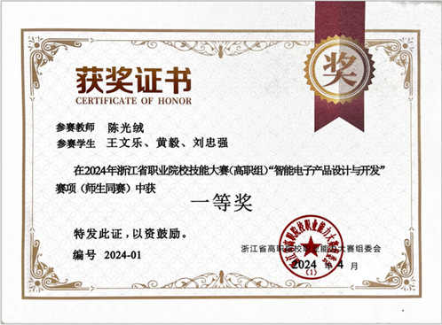 2024  浙江省“智能电子产品设计与开发”竞赛  一等奖