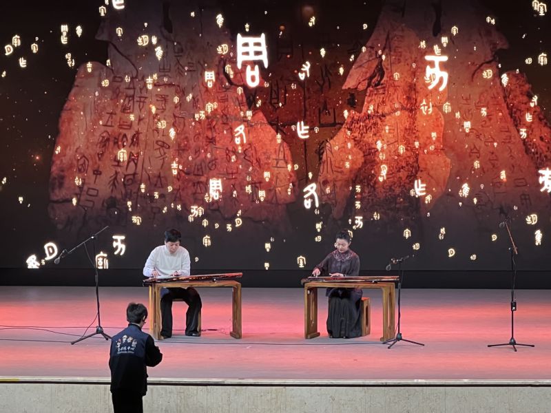 音乐会以古琴合奏《神人畅》拉开序幕,钟之岳副教授与胡蕴子的精湛技艺为观众带来了一场震撼的听觉盛宴。随后,魏苏宁的萧独奏《妆台秋思》、王哲慧的琵琶独奏《改进操》等曲目相继上演,每一位艺术家都以自己独特的方式诠释了音乐的魅力。