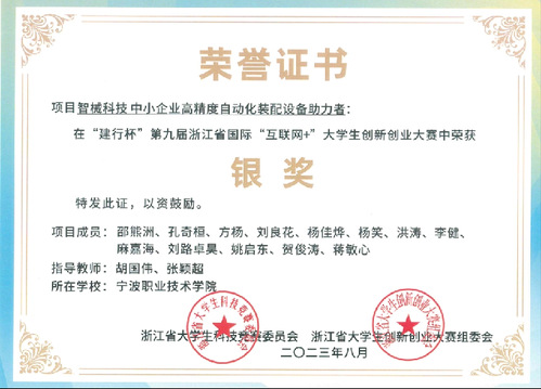 1.“建行杯”第九届浙江省国际“互联网+”大学生创新创业大赛银奖