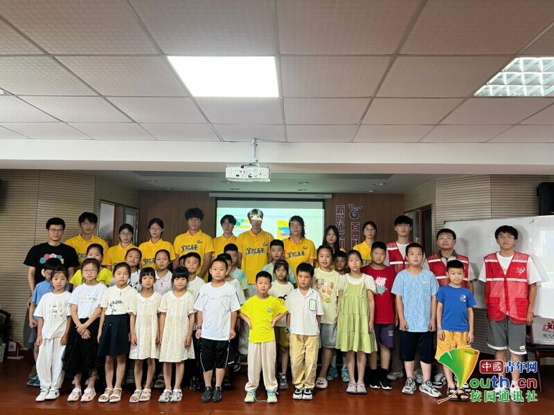 图为团队成员们与小朋友们学习完Scratch软件后的合照。易鑫钰 供图