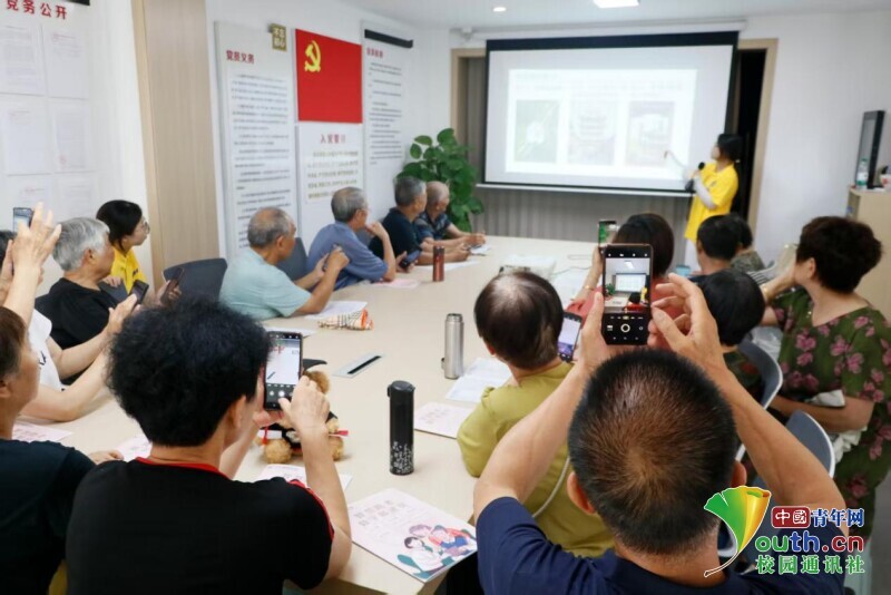 图为团队成员陈家琪为老人讲解如何下载软件。吴逸瑜供图