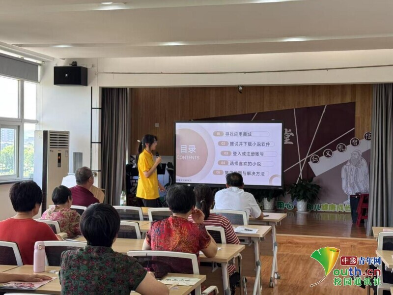 图为团队成员陈以琳讲解生活中看小说软件的步骤及常见问题。吴逸瑜供图